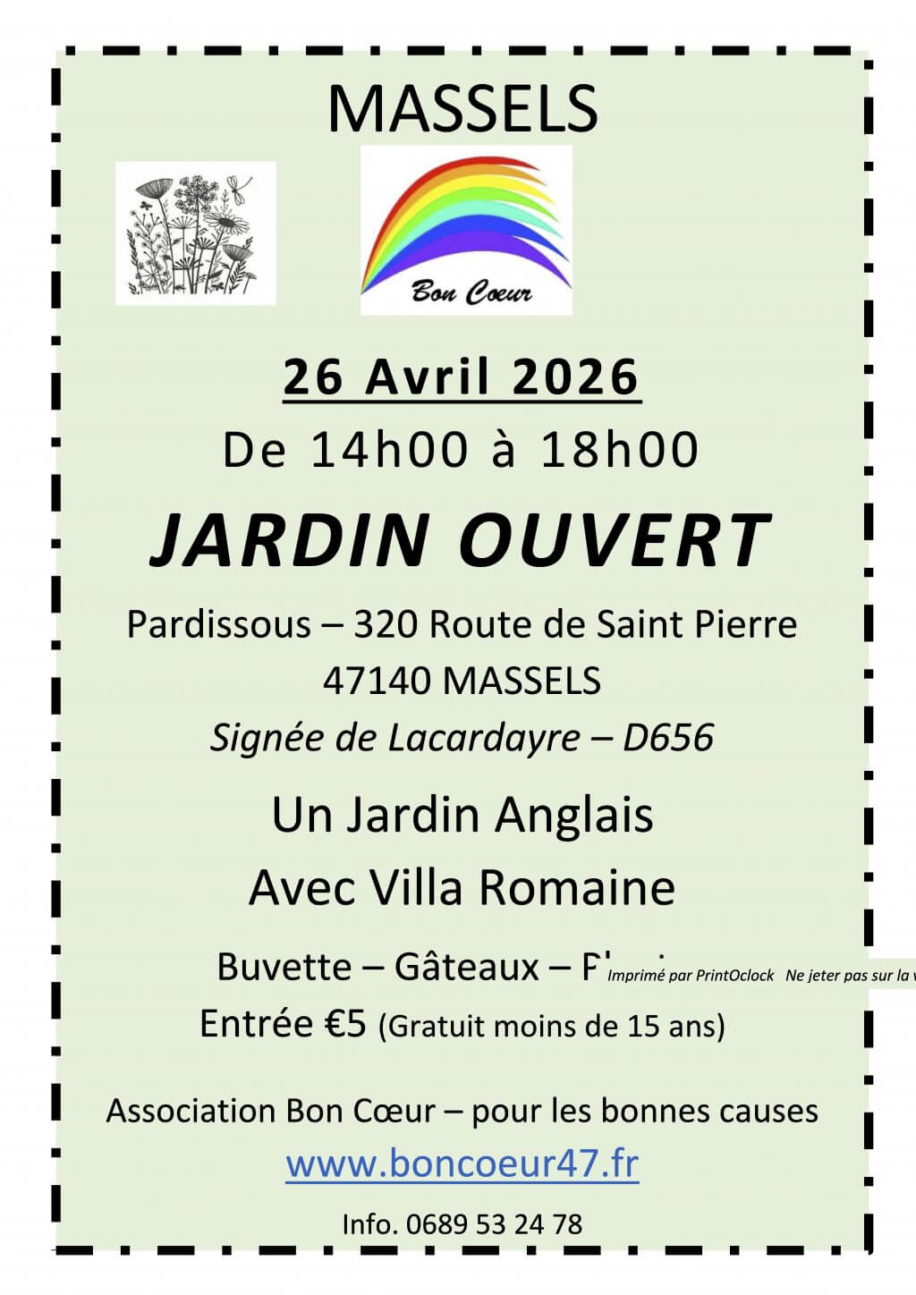 Back again this year. A fascinating garden at Massels will be open on 26 of April.